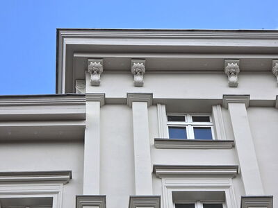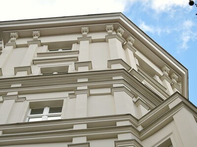 Im Zuge der Fassadensanierung wurden beschädigte Putzbereiche, Risse und witterungsbedingte Schadstellen fachgerecht überarbeitet. Ergänzend dazu wurden vorhandene Stuckelemente sorgfältig instand gesetzt, damit die historische Fassadenstruktur wieder klar lesbar wird. So konnten sowohl die Substanz als auch die gestalterische Qualität des Altbaus nachhaltig gesichert werden.