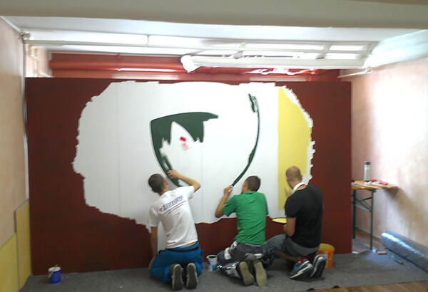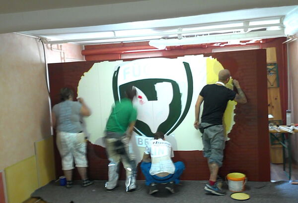 Im Scandic- Hotel am Potsdamer Platz durften Sponsoren, Partner und Gäste die neuen Spreefüchse begutachten. Neben dem neuen Logo wurde neues Maskottchenvorgestellt. Die Lehrlinge der Lüttgens Malereibetriebe unter Leitung des Verantwortlichen Eric Rittmeyer erstellten eine große Tafel mit dem neuen Logo der Spreefüchse.