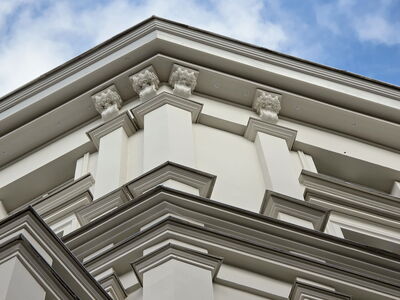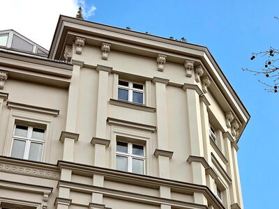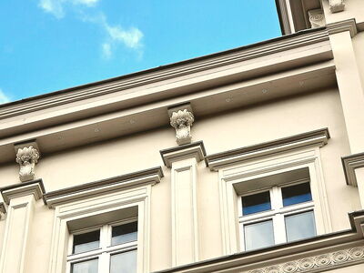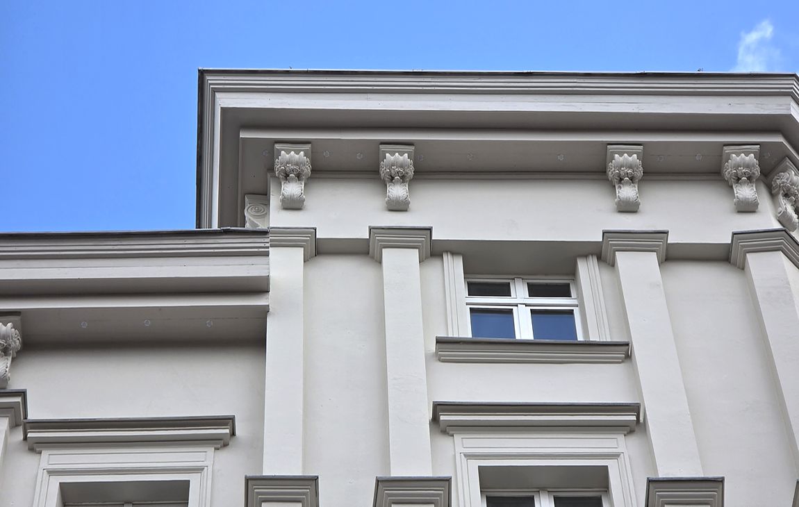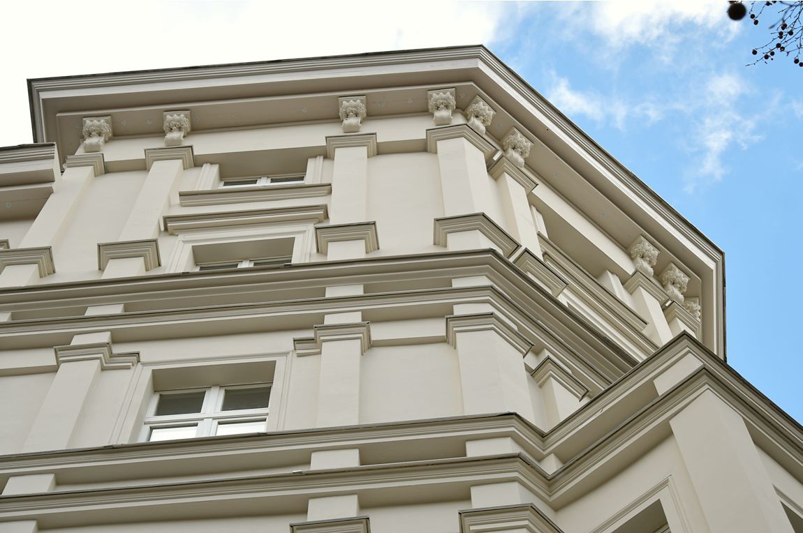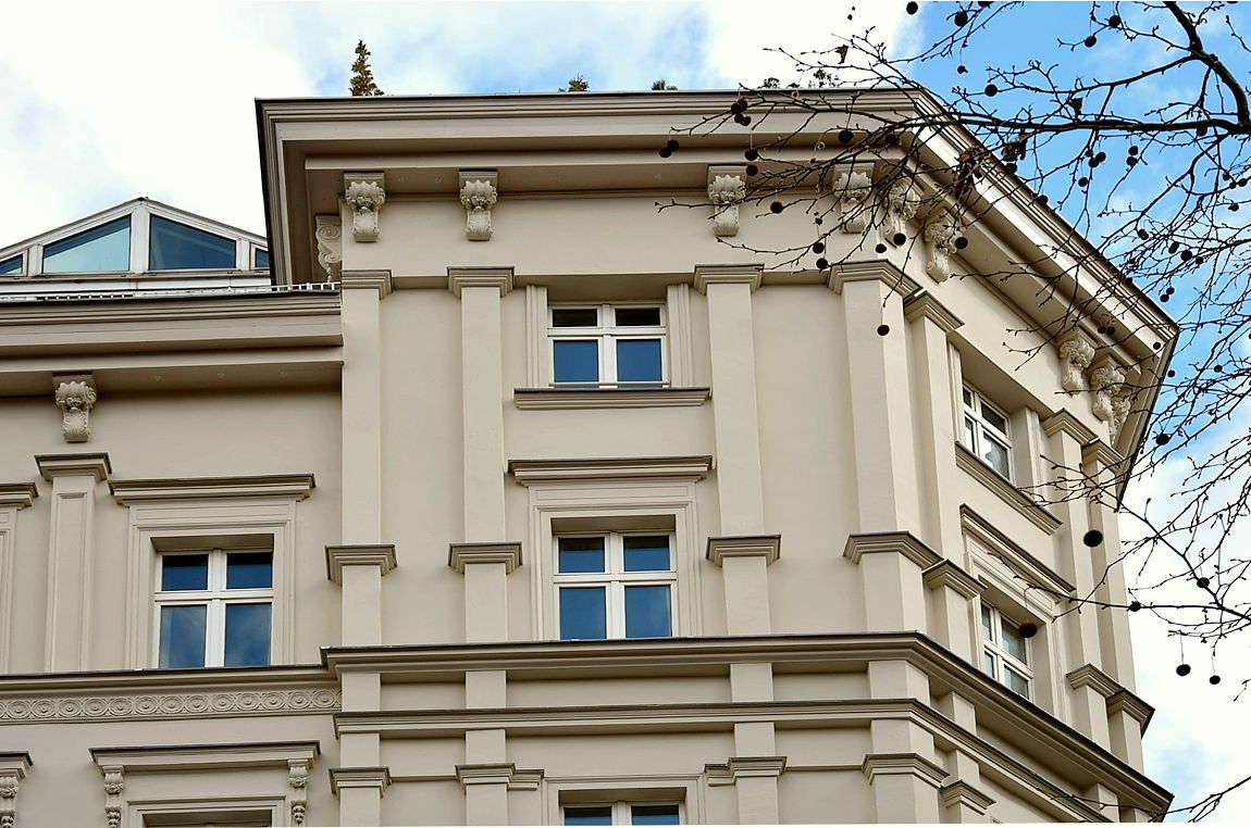 Im Zuge der Fassadensanierung wurden beschädigte Putzbereiche, Risse und witterungsbedingte Schadstellen fachgerecht überarbeitet. Ergänzend dazu wurden vorhandene Stuckelemente sorgfältig instand gesetzt, damit die historische Fassadenstruktur wieder klar lesbar wird. So konnten sowohl die Substanz als auch die gestalterische Qualität des Altbaus nachhaltig gesichert werden.