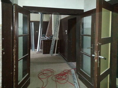Im Innenbereich wurde ebenso sorgfältig gearbeitet. Kleine Putzschäden an Wand- und Deckenflächen wurden repariert, bevor alle Flächen fachgerecht neu gestrichen wurden. Besondere Aufmerksamkeit galt den zahlreichen Holzbauteilen: Fenster, Türen, Deckenverkleidungen, Wandschränke, Wandpaneele sowie die gesamte hölzerne Treppenanlage wurden geschliffen, grundiert und mit hochwertigen Lacken neu beschichtet.